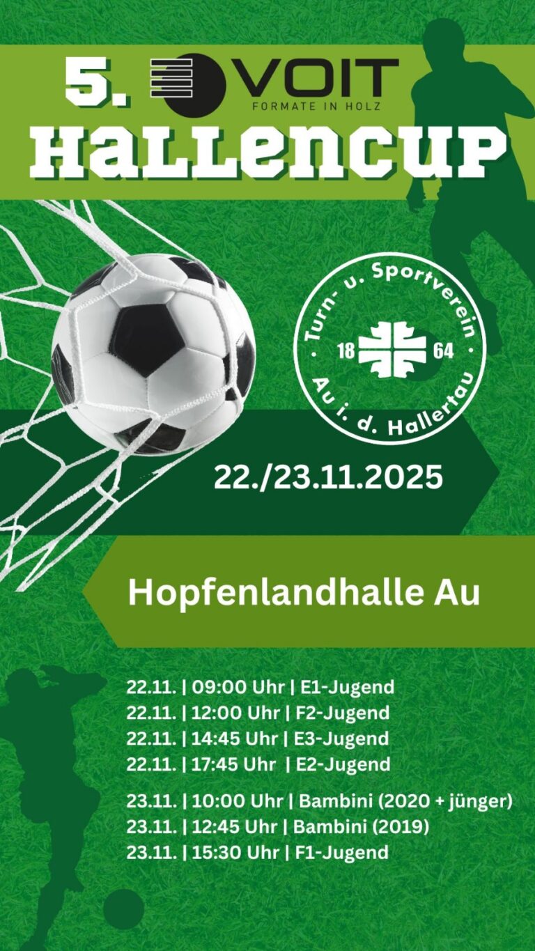 Am 22. und 23. November 2025 lädt der TSV Au zum 5. VOIT Hallencup in…